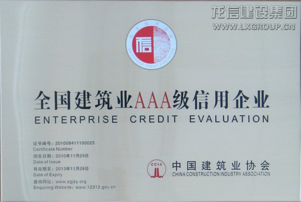集團公司榮獲建筑業AAA級信用企業榮譽稱號