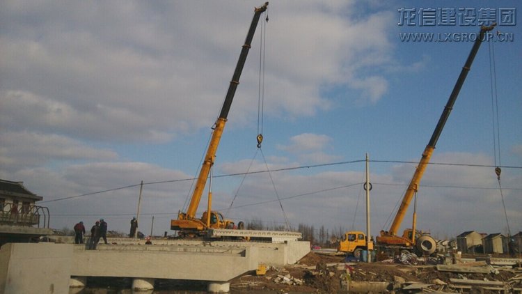 龍信集團市政公司余東大新河橋項目板梁吊裝于2015年1月20日順利完成,各項測試檢驗數據全部達標,與合同工期主體完成提前12天。