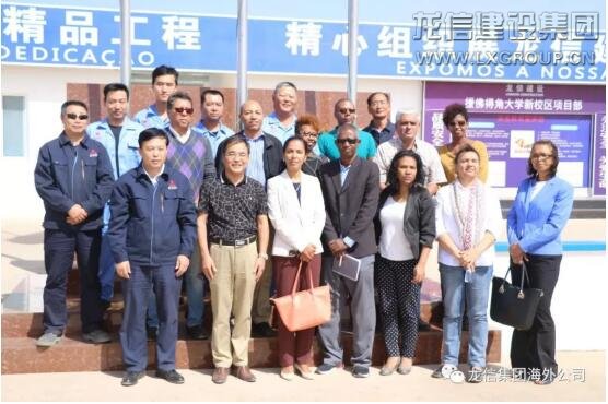 2018年元月30日,佛得角基建設施部部長尤妮絲.席爾瓦女士一行15人,在項目管理組組長王世國及龍信集團駐場代表、項目負責人施錦元等人的陪同下,視察了援佛得角大學新校區項目,隨同尤妮絲. 席爾瓦部長前來的還有,部長辦公室主任伊內達·莫拉斯、基礎設施局局長阿德麗莎·戴爾佳多、道路管理司司長愛德華多·洛佩斯、住房管理司司長弗朗西斯科·奈維斯、國家實驗室院長卡拉·馬丁斯、計劃、預算與管理局局長埃德娜·絲奎拉、部長顧問馬賽杜等。