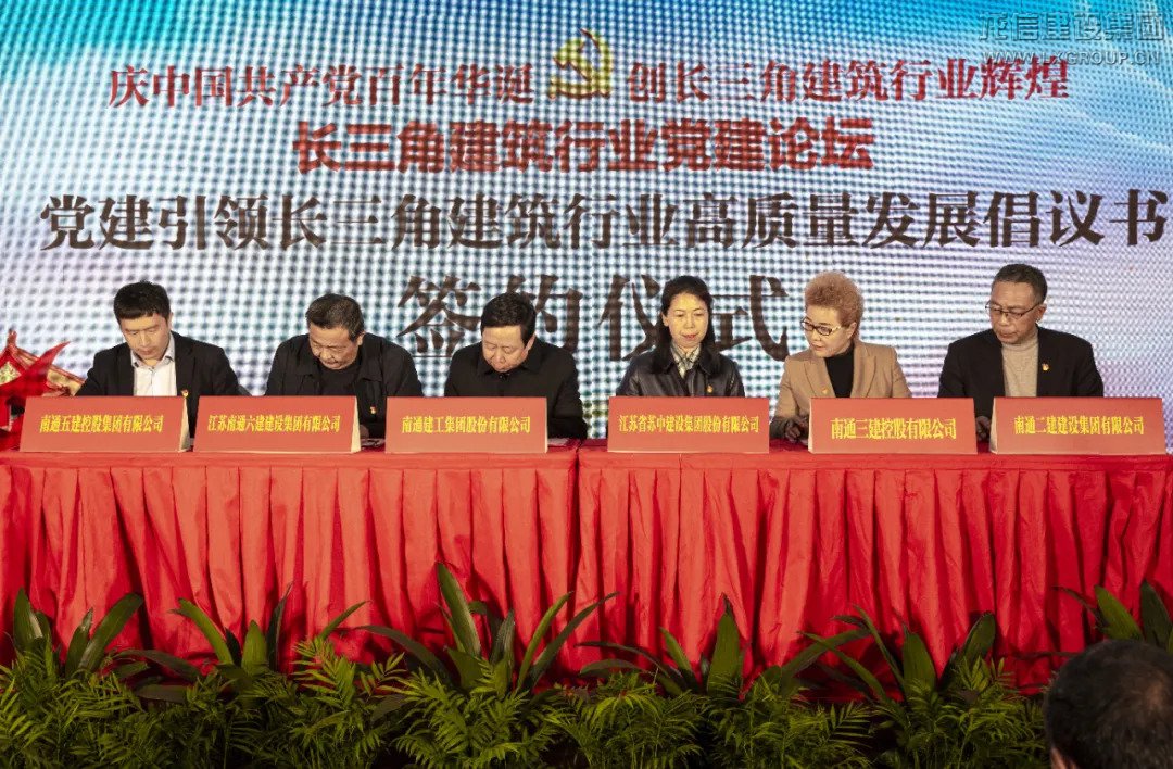 論壇上,長三角建筑行業(yè)黨建論壇揭牌,由安徽省建筑設(shè)計(jì)研究總院股份有限公司、沈陽建筑大學(xué)、中天建設(shè)集團(tuán)有限公司、上海海怡建設(shè)(集團(tuán))有限公司、上海華東房產(chǎn)設(shè)計(jì)院有限公司、南通三建控股集團(tuán)有限公司、江蘇省蘇中建設(shè)集團(tuán)股份有限公司、南通建工集團(tuán)股份有限公司、江蘇南通六建建設(shè)集團(tuán)有限公司、南通五建控股集團(tuán)有限公司、南通二建建設(shè)集團(tuán)有限公司、龍信建設(shè)集團(tuán)有限公司12家企業(yè)共同聯(lián)合發(fā)起《黨建引領(lǐng)長三角建筑行業(yè)高質(zhì)量發(fā)展倡議書》。《倡議書》指出,長三角一體化的步伐鏗鏘有力、建筑業(yè)轉(zhuǎn)型升級(jí)高質(zhì)量發(fā)展的藍(lán)圖已躍然紙上。未來,長三角區(qū)域里的建筑業(yè)企業(yè),將堅(jiān)持黨建引領(lǐng)企業(yè)發(fā)展,以踏實(shí)肯干的“老黃牛”精神、敬業(yè)奉獻(xiàn)的“孺子牛”精神、敢闖敢干的“初生牛犢”精神,朝著高質(zhì)量發(fā)展的目標(biāo)高歌猛進(jìn)、再立新功,打好“十四五”之戰(zhàn)!