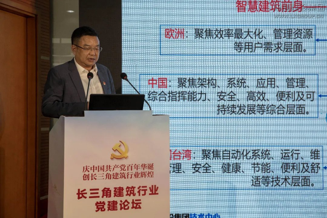 程志軍作智慧建筑相關(guān)專題報(bào)告。他說,政策引導(dǎo)、技術(shù)創(chuàng)新、需求轉(zhuǎn)變倒逼著建筑轉(zhuǎn)型,促進(jìn)了智慧建筑發(fā)展。多年來,龍信集團(tuán)致力于構(gòu)建智慧建筑評(píng)價(jià)體系、推動(dòng)智慧項(xiàng)目試點(diǎn),以科技驅(qū)動(dòng)探索建筑智能升級(jí),推動(dòng)建筑智慧轉(zhuǎn)型。如今,智慧建筑需要“三個(gè)進(jìn)化”,即商業(yè)模式進(jìn)化、產(chǎn)品形態(tài)進(jìn)化、產(chǎn)業(yè)鏈進(jìn)化。未來,我們要進(jìn)一步促進(jìn)智慧建筑產(chǎn)業(yè)科研成果落地轉(zhuǎn)化,推廣智慧建筑以及促進(jìn)建筑產(chǎn)業(yè)上下游資源的對(duì)接,助推資源共融。