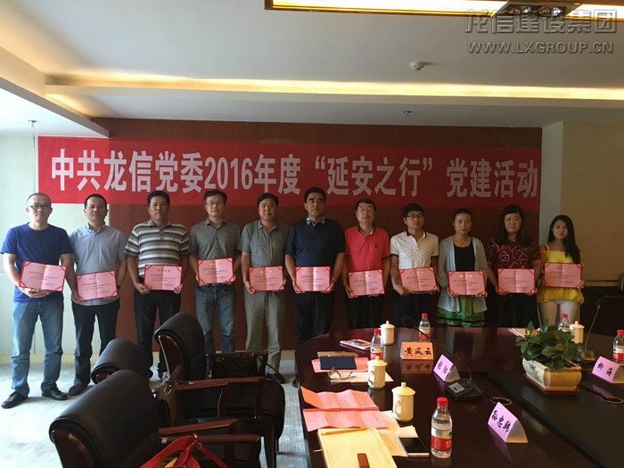 7月9日-7月10日,龍信集團2016年黨建活動在革命圣地延安舉行。公司黨委委員陳祖新、唐愛東、卞勤華、王裕達,支部正副書記朱啟生、宋飛兵、陸文沖、柳海、蔡颯爽及張志軒、張海軍等2015年度公司優秀黨員參加了此次活動。
